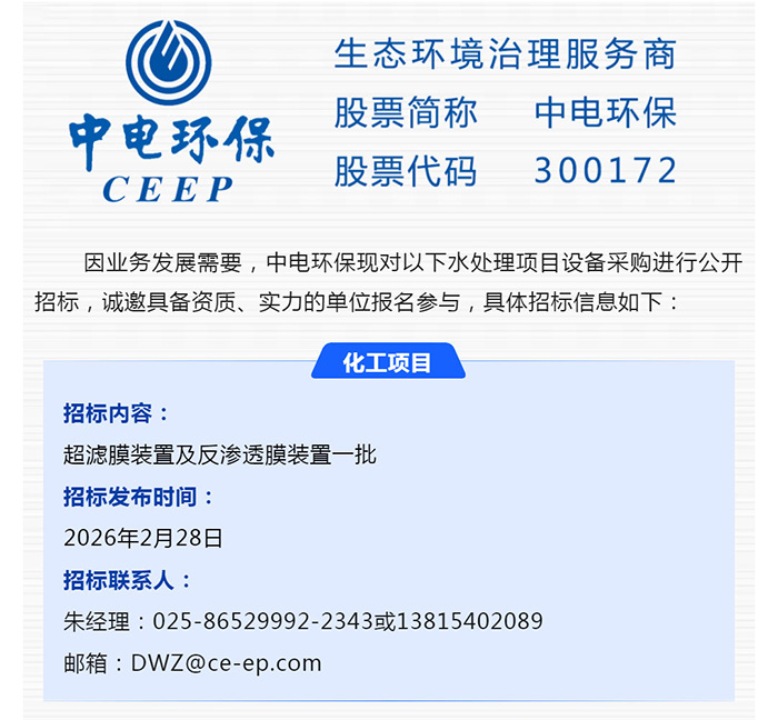 中電環(huán)保股份有限公司是南京市首家環(huán)保上市公司(股票簡稱:中電環(huán)保,股票代碼:300172),南京環(huán)保產(chǎn)業(yè)協(xié)會會長單位,國家級聯(lián)盟理事長單位,是生態(tài)環(huán)境治理服務(wù)商,主營(3+1):水務(wù)、固危廢、煙氣治理及產(chǎn)業(yè)創(chuàng)新平臺,包括:工業(yè)水處理、污水處理及水環(huán)境綜合治理;固危廢土壤、污泥餐廚垃圾處理;煙氣及VOCS治理;智慧環(huán)保;高端裝備等。